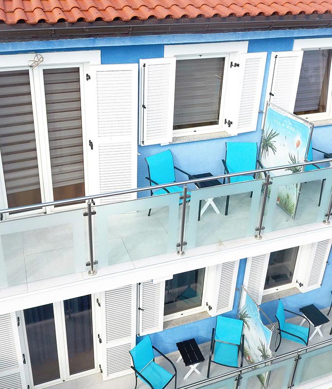 Unser Haus ist nur zwanzig Meter vom Strand und fünf Minuten zu Fuß vom Zentrum Crikvenicas entfernt. Die Villa Marica ist in jedem Apartment mit einem LCD-SAT TV, Kochzeile, Kühlschrank, Dusche/WC, Klima und kostenfreiem Internetzugang ausgestattet. Allen Gästen unseres Hauses steht die Lounge Terrasse (Lounge und Grill Terrasse mit Whirpool) zur Verfügung. Die Lounge Terrasse die Emotional an gemütliche mediterrane Altstadt Lokale und Cafés erinnert. Alle Gäste können auch ein Wellness Bereich mit Sauna, Whirlpool & Bodenheizung.