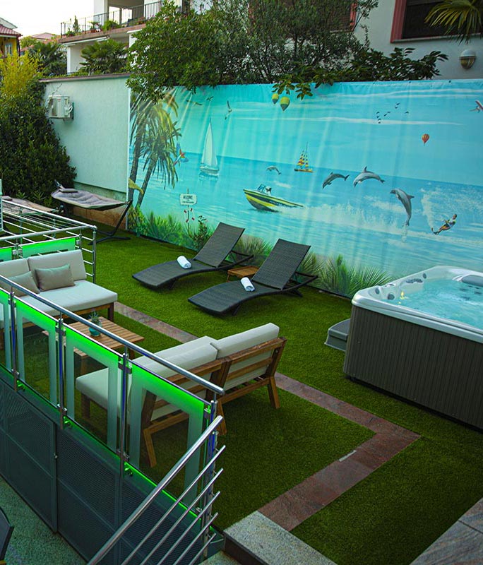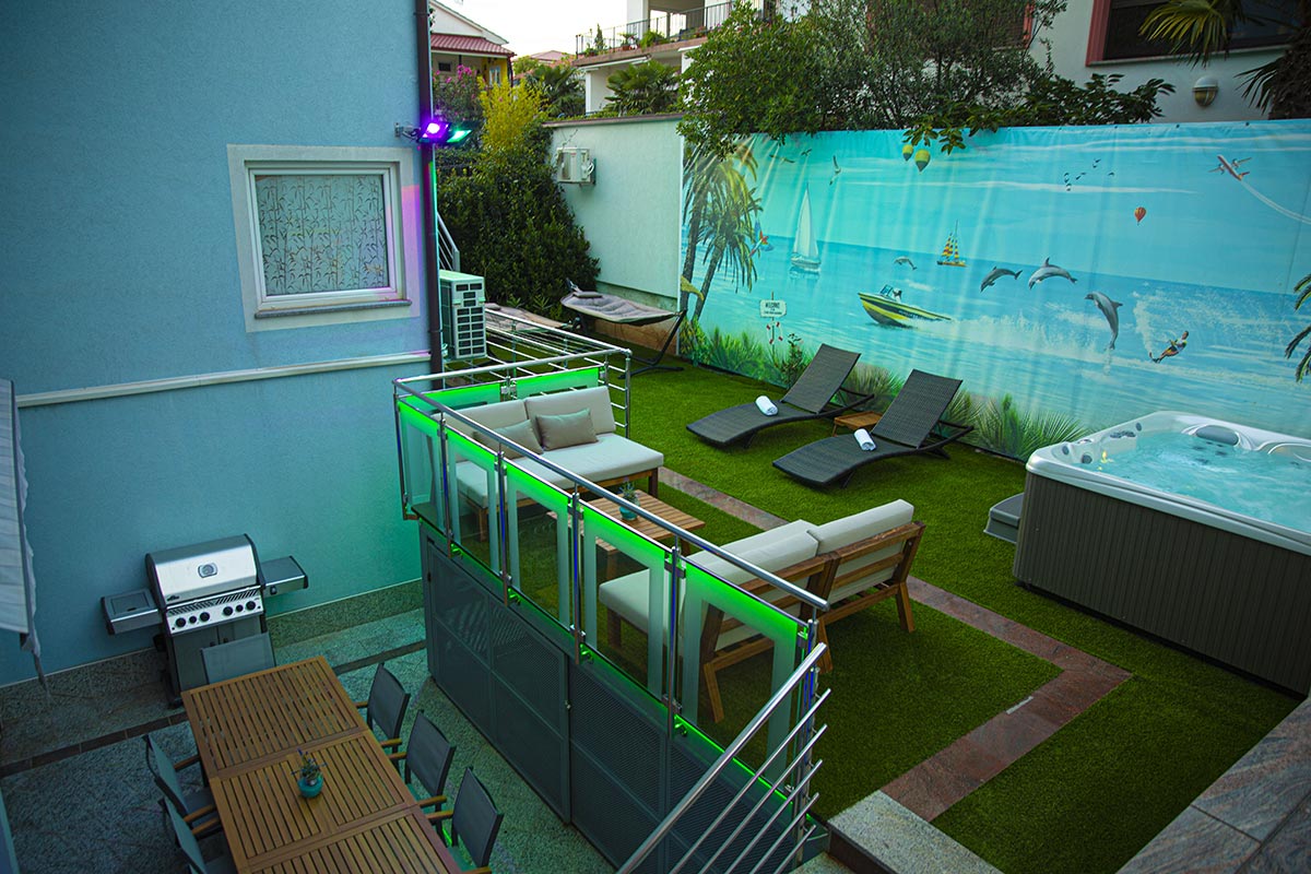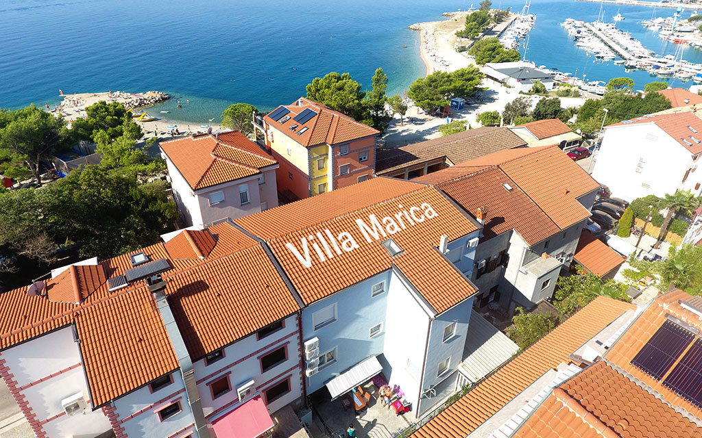 Unser Haus ist nur zwanzig Meter vom Strand und fünf Minuten zu Fuß vom Zentrum Crikvenicas entfernt. Die Villa Marica ist in jedem Apartment mit einem LCD-SAT TV, Kochzeile, Kühlschrank, Dusche/WC, Klima und kostenfreiem Internetzugang ausgestattet. Allen Gästen unseres Hauses steht die Lounge Terrasse (Lounge und Grill Terrasse mit Whirpool) zur Verfügung. Die Lounge Terrasse die Emotional an gemütliche mediterrane Altstadt Lokale und Cafés erinnert. Alle Gäste können auch ein Wellness Bereich mit Sauna, Whirlpool & Bodenheizung.